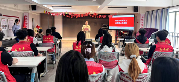 白玉芳书记介绍了社区“专业社工+志愿服务”融合试点项目以及我校青年志愿者服务情况,希望青年志愿者们带着专业知识和创新思维,走进网格楼栋、走进居民心坎,在敬老助老、代际互补、文化传承等实践中,成为社区治理的“新引擎”。